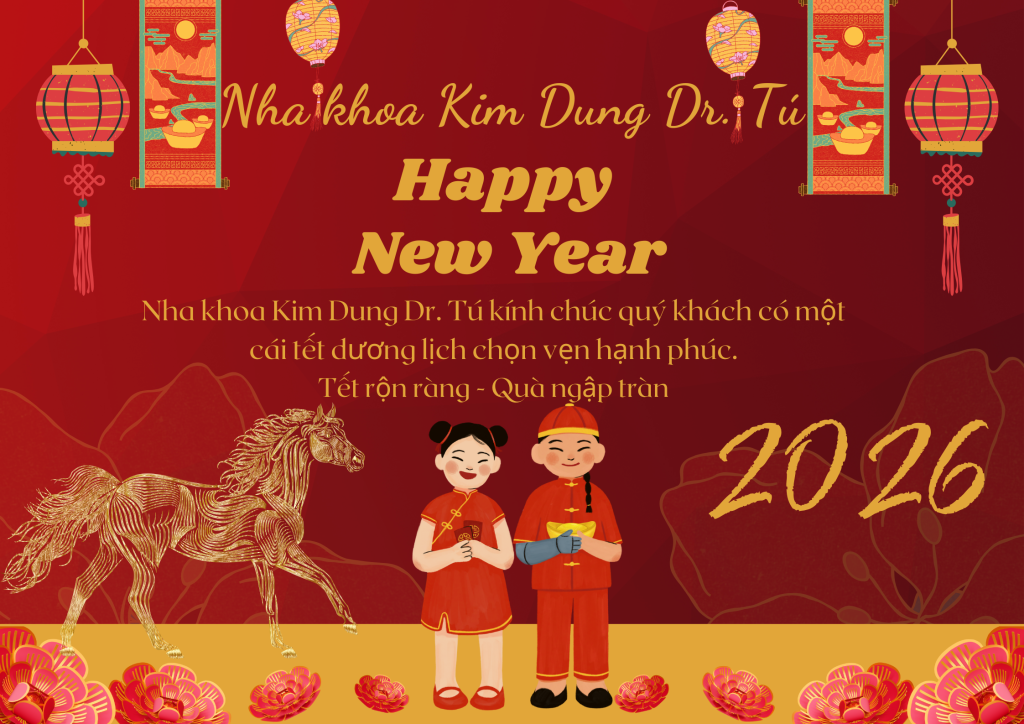 Nha khoa Kim Dung Dr. Tú xin trân trọng gửi đến Quý khách lời chúc năm mới sức khỏe dồi dào, hạnh phúc viên mãn và thành công trong mọi dự định. Chân thành cảm ơn Quý khách đã luôn tin tưởng, lựa chọn và đồng hành cùng chúng tôi trong suốt thời gian qua. Kính chúc Quý khách và gia đình một năm mới an khang, bình an và tràn đầy niềm vui.